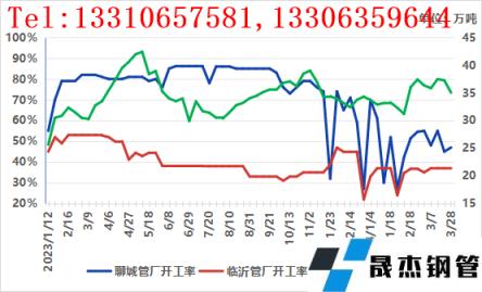 據(jù)網(wǎng)監(jiān)測數(shù)據(jù)顯示,截至28日山東臨沂、聊城、濰坊、煙臺(tái)地區(qū)21家樣本96條產(chǎn)線開工率46.65%,環(huán)比下降2.8%,成材庫存47.92萬噸,同比下降4.52%。而主流市場庫存總量76.78萬噸,同比上升1.95%。管廠以及市場庫存在3月初達(dá)到峰值后,隨著月中期貨短暫反彈階段需求市場有小批量抄底的操作,但庫存壓力依舊不小。