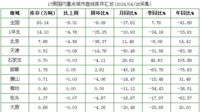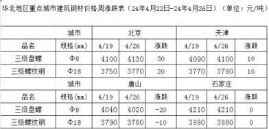 免責聲明:本網站(山東聊城晟杰無縫鋼管廠m.cuirutang.cn)刊載的“鋼鐵華北建材周報(四月第四周)”等均源于網絡,版權歸原作者所有,且僅代表原作者觀點,本文所載信息僅供參考。轉載僅為學習與交流之目的,如無意中侵犯您的合法權益,請及時聯系刪除。本網站刊登此篇文章并不意味著本站贊同其觀點或證實其內容的真實性,我們不對其科學性、嚴肅性等作任何形式的保證。如果侵犯了您的版權,請盡快聯系我們予以撤銷,謝謝合作!