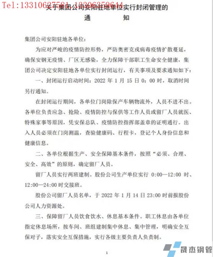 安陽市是鋼鐵大市,據此前報道,安陽市共有鋼鐵冶煉企業11家,其中長流程聯合冶煉企業共6家,分別是安鋼、沙鋼永興、鳳寶、亞新、新普、匯鑫;獨立煉鐵企業3家,分別是博盛、鑫源、林鋼;短流程煉鋼為博鑫1家,短流程鑄造生鐵企業林州合鑫鑄業1家。此次受疫情影響,這些無縫鋼管廠紛紛全面停產或封廠!