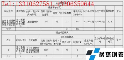 12月23日,吉林省工信廳發(fā)布2家鋼企產(chǎn)能置換方案公告。預(yù)計(jì)新增煉鋼產(chǎn)能200萬(wàn)噸,退出產(chǎn)能200萬(wàn)噸,詳情如下: