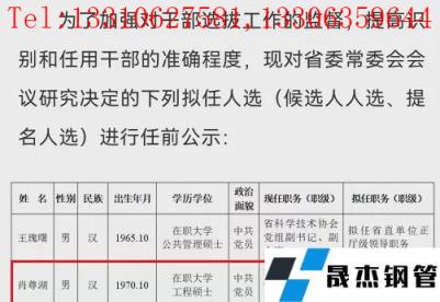 免責聲明:本網站(山東聊城晟杰無縫鋼管廠m.cuirutang.cn)刊載的“大變動!涉及多家鋼企董事長、多地市委書記、北大系主任!”等均源于網絡,版權歸原作者所有,且僅代表原作者觀點,本文所載信息僅供參考。轉載僅為學習與交流之目的,如無意中侵犯您的合法權益,請及時聯系刪除。本網站刊登此篇文章并不意味著本站贊同其觀點或證實其內容的真實性,我們不對其科學性、嚴肅性等作任何形式的保證。如果侵犯了您的版權,請盡快聯系我們予以撤銷,謝謝合作!