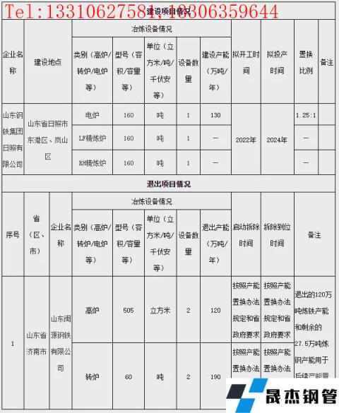 同時,江蘇沙鋼集團淮鋼特鋼股份有限公司退出450m3高爐2座、580m3高爐2座和70t電爐1座;江蘇申特鋼鐵有限公司退出1250m3高爐1座和450m3高爐1座。所有項目共計退出煉鐵產能382.5萬噸/年,煉鋼產能67.26萬噸/年。