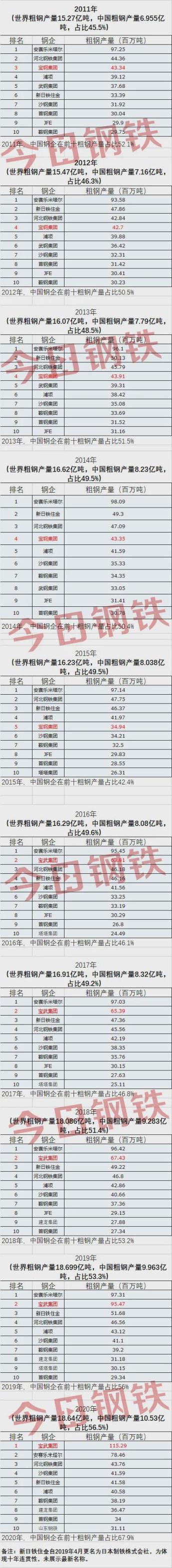 2021年8月,世界鋼鐵協(xié)會發(fā)布《世界鋼鐵統(tǒng)計數(shù)據(jù)2020》該統(tǒng)計數(shù)據(jù)根據(jù)2020年粗鋼產(chǎn)量情況對全球鋼鐵企業(yè)進行排名,并發(fā)布了全球前50大鋼鐵企業(yè)名單。中國寶武以2020年11529萬噸粗鋼產(chǎn)量位列榜首!這也是中國鋼企首次登頂世界之巔,也是世界鋼鐵企業(yè)首次沖破一億噸粗鋼產(chǎn)量大關(guān)!