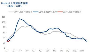 從上海本地螺紋庫存情況來看,截至1月發稿,上海本地螺紋庫存為30.70萬噸,環比上周增加5.68萬噸,增幅為18.50%;同比20年減少9.99萬噸,減幅為24.55%。從累庫起點看,本地開始累庫的水平同比低于往年。從累庫周期看,21年冬儲累庫周期接近兩個半月。而22年本地未有疫情影響市場集中于常規時間放假疊加本地需求持續性表現較好,直至1月下旬本地才進入常規累庫狀態,累庫周期也將明顯縮短。