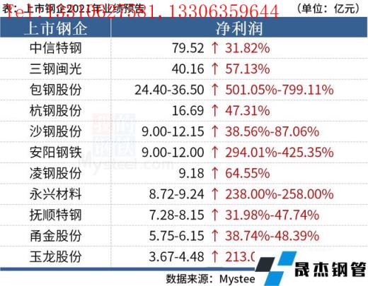 免責聲明:本網站(山東聊城晟杰無縫鋼管廠m.cuirutang.cn)刊載的“2021年鋼企利潤創新高,中信特鋼實現凈利近80億”等均源于網絡,版權歸原作者所有,且僅代表原作者觀點,本文所載信息僅供參考。轉載僅為學習與交流之目的,如無意中侵犯您的合法權益,請及時聯系刪除。本網站刊登此篇文章并不意味著本站贊同其觀點或證實其內容的真實性,我們不對其科學性、嚴肅性等作任何形式的保證。如果侵犯了您的版權,請盡快聯系我們予以撤銷,謝謝合作!