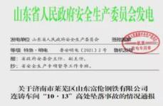 事故情況:濟(jì)南市萊蕪區(qū)山東富倫鋼鐵有限公司連鑄車間發(fā)生人員高處墜落事故,造成3人死亡、1人受傷。