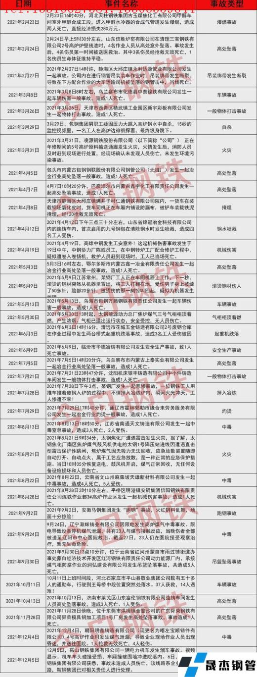 當(dāng)前安全生產(chǎn)工作正處于關(guān)鍵時(shí)期,鋼鐵企業(yè)要嚴(yán)防安全風(fēng)險(xiǎn)因素的產(chǎn)生。回顧2021年小編將一些具有代表性的安全事故案例匯編如下: