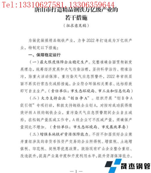 為做優做強精品鋼鐵產業,力爭2022年打造成為億萬級產業,唐山市印發了《唐山市打造精品鋼鐵萬億級產業的若干措施(征求意見稿)》(以下簡稱《措施》)。