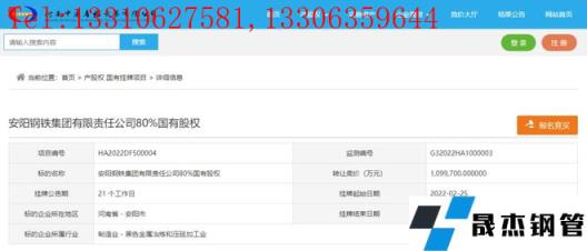免責聲明:本網站(山東聊城晟杰無縫鋼管廠m.cuirutang.cn)刊載的“混改倒計時!安鋼集團110億掛牌轉讓!二十余鋼企有接手資格?”等均源于網絡,版權歸原作者所有,且僅代表原作者觀點,本文所載信息僅供參考。轉載僅為學習與交流之目的,如無意中侵犯您的合法權益,請及時聯系刪除。本網站刊登此篇文章并不意味著本站贊同其觀點或證實其內容的真實性,我們不對其科學性、嚴肅性等作任何形式的保證。如果侵犯了您的版權,請盡快聯系我們予以撤銷,謝謝合作!