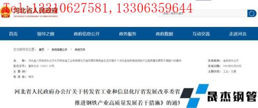 免責聲明:本網站(山東聊城晟杰無縫鋼管廠m.cuirutang.cn)刊載的“重磅文件出爐!河北鋼鐵大調整!嚴查、重組、退出...”等均源于網絡,版權歸原作者所有,且僅代表原作者觀點,本文所載信息僅供參考。轉載僅為學習與交流之目的,如無意中侵犯您的合法權益,請及時聯系刪除。本網站刊登此篇文章并不意味著本站贊同其觀點或證實其內容的真實性,我們不對其科學性、嚴肅性等作任何形式的保證。如果侵犯了您的版權,請盡快聯系我們予以撤銷,謝謝合作!