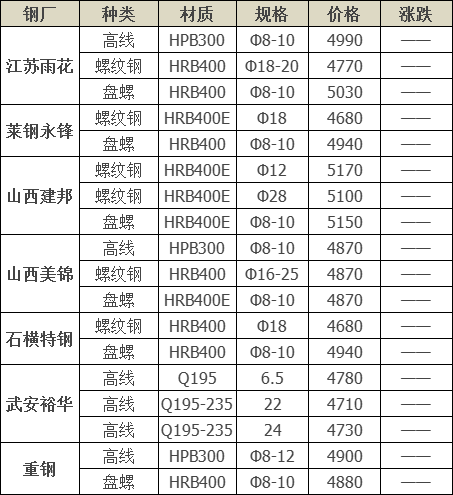 今日鋼廠指導價格穩中調整,原料價格略有下降,然近期連續上漲,冬儲季貿易商冬儲意愿變弱,臨近春節,下游需求不高,市場成交表現不佳,廠商多穩價去庫。預計短期鋼廠價格持穩偏弱。