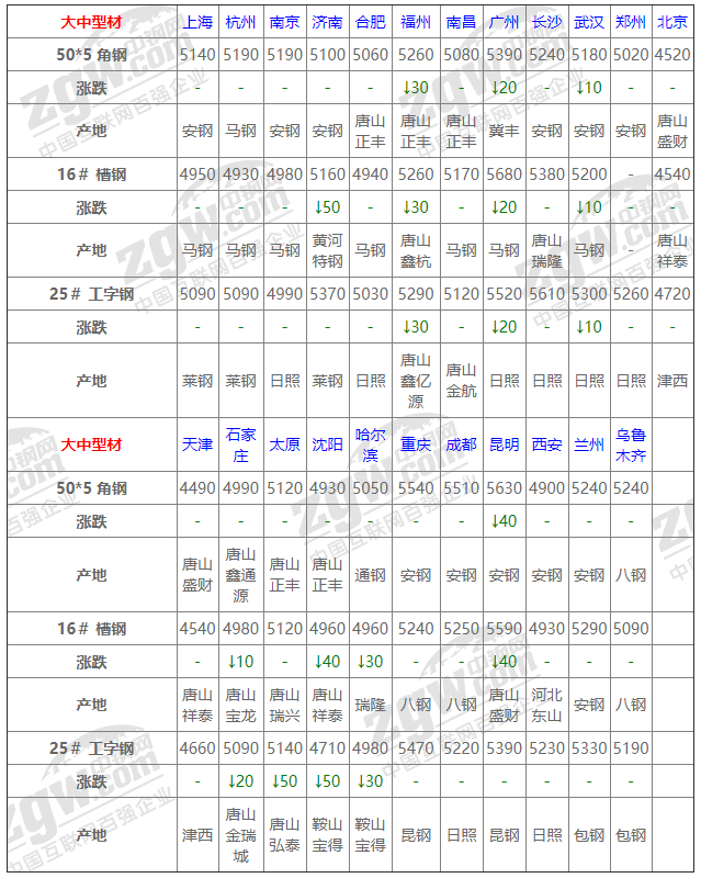 全國(guó)22個(gè)主要市場(chǎng)16# 槽鋼平均價(jià)格5097元/噸,較上個(gè)交易日下調(diào)11元/噸。