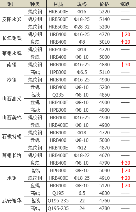 今日板、型、管、特鋼共15家鋼廠調價發布,其中: