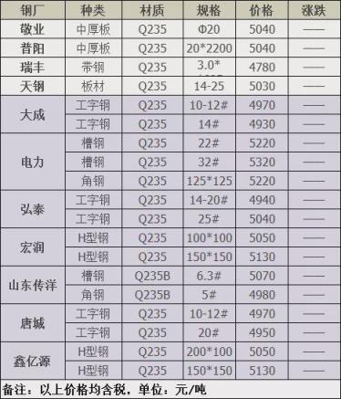 今日板、型材共11家無縫鋼管廠調價發布,其中: