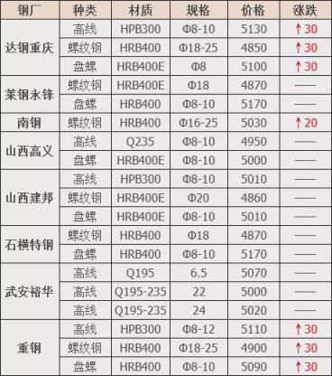 漲幅最高為達(dá)鋼重慶建材;