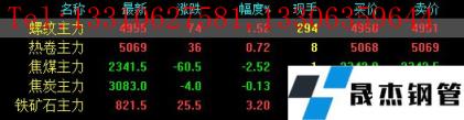 今日螺紋主力期貨漲74,收報4955,漲幅1.52%;熱卷主力漲36,收報5069,漲幅0.72%;焦煤主力跌60.5,收報2341.5,跌幅2.52%;焦炭主力跌4,收報3083,跌幅0.13%;鐵礦石主力漲25.5,收報821.5,跌幅3.2%。