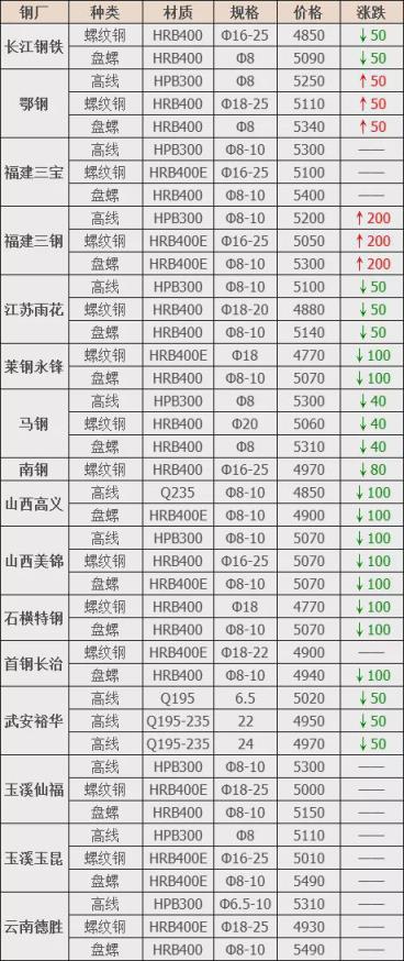 下調(diào)7家,占比63.7%,調(diào)價(jià)幅度20-70元/噸;