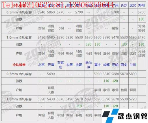 全國23個主要市場1.0mm 冷軋板卷平均價格5592元/噸,較上個交易日下調7元/噸。