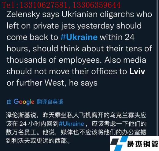 免責聲明:本網站(山東聊城晟杰無縫鋼管廠m.cuirutang.cn)刊載的“突襲之下,烏克蘭無縫鋼管廠相繼停產運輸中斷,鋼價會暴漲嗎?”等均源于網絡,版權歸原作者所有,且僅代表原作者觀點,本文所載信息僅供參考。轉載僅為學習與交流之目的,如無意中侵犯您的合法權益,請及時聯系刪除。本網站刊登此篇文章并不意味著本站贊同其觀點或證實其內容的真實性,我們不對其科學性、嚴肅性等作任何形式的保證。如果侵犯了您的版權,請盡快聯系我們予以撤銷,謝謝合作!