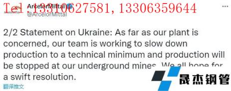 貿易消息人士稱,烏克蘭的幾家鋼鐵廠,包括管道制造集團 Interpipe以及位于馬里烏波爾的 Azovstal 和 Ilyich 無縫鋼管廠家,都是 Metinvest 的一部分,已經停止生產和運輸。Interpipe 向 Platts 證實,它已于2月初停止生產和發貨。2月24日開始罷工。