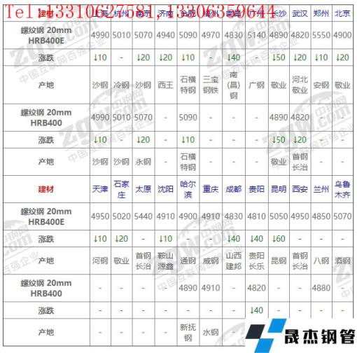 全國10個主要市場螺紋鋼 20mm HRB400平均價格4937元/噸,較上個交易日下調15元/噸。