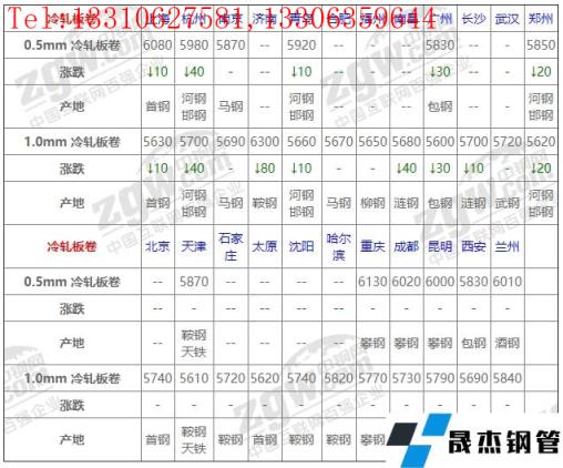 全國23個主要市場1.0mm 冷軋板卷平均價格5726元/噸,較上個交易日下調13元/噸。