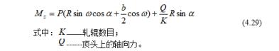 當(dāng)有頂頭時如圖4-13所示,在前進(jìn)方向受到頂頭的軸向阻力(Q),這時傳動軋輥所需總軋制力矩為: