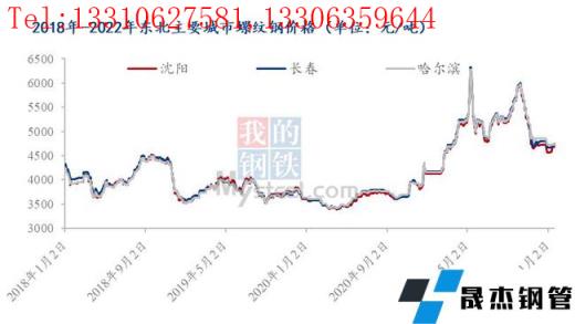 每年進(jìn)入12月份后、東北建筑鋼材市場(chǎng)因下游工程大部分停工、需求銳減,而無(wú)縫鋼管廠多忙于北材南下無(wú)暇北顧,供需兩弱狀態(tài)下,價(jià)格對(duì)成交難以造成較大影響,商家也懶于調(diào)整對(duì)外報(bào)價(jià),所以市場(chǎng)多數(shù)平穩(wěn)運(yùn)行為主,而今年進(jìn)入1月后、市場(chǎng)價(jià)格仍出現(xiàn)了比較明顯的反季運(yùn)行征象,截至2022年1月26日,東北地區(qū)主要建筑鋼材市場(chǎng)HRB400E螺紋鋼φ22mm報(bào)收4730-4750元/噸,較2021年12月底拉漲0-180元/噸。