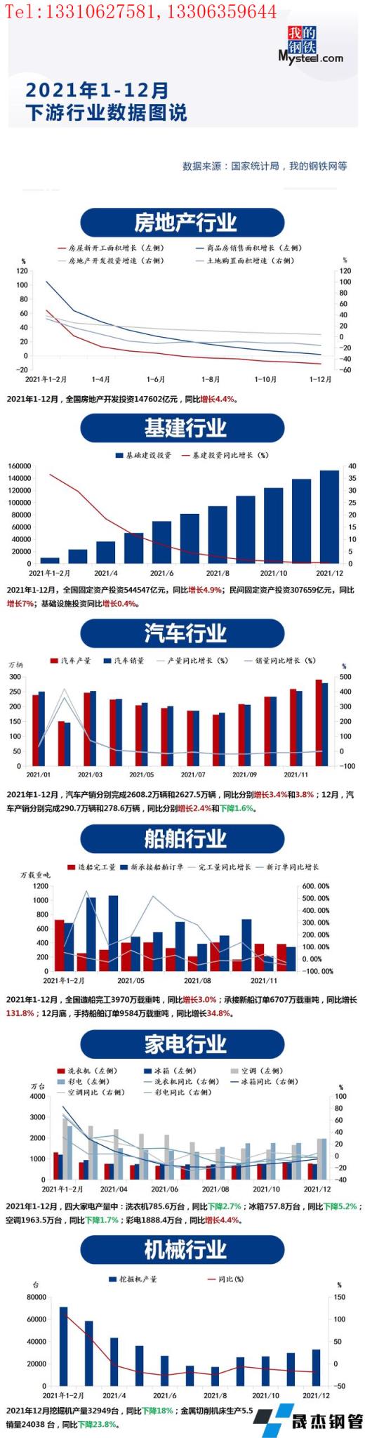 匯總了2021年1-12月部分下游用鋼行業(yè)的運(yùn)行情況。