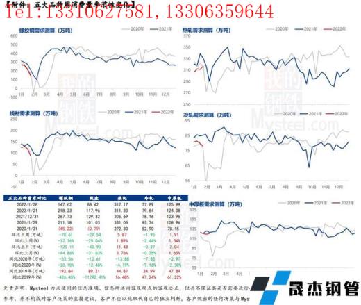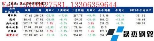 本周五大品種周消費量降幅突出,主要原因在于建材品種庫存增幅突出,但供應(yīng)減量有限;而板材品種供應(yīng)和庫存均未有明顯變化,因此整體消費受建材品種影響出現(xiàn)大幅下降。從下游消費來看,節(jié)前最后一周,全國大面積雨雪天氣來襲,以及員工停休放假,需求基本停滯。