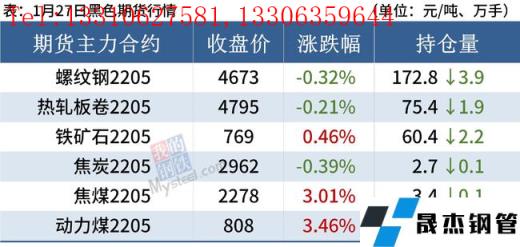 熱軋板卷:1月27日,全國(guó)24個(gè)主要城市4.75mm熱軋板卷均價(jià)4914元/噸,較上個(gè)交易日持平。隨著春節(jié)臨近,現(xiàn)貨市場(chǎng)商家逐步離市,市場(chǎng)已處于有價(jià)無(wú)市局面,工人已陸續(xù)返鄉(xiāng),終端需求逐步停滯。受冬奧會(huì)限產(chǎn)抑制影響,節(jié)日期間無(wú)縫鋼管廠家高爐開工率存下調(diào)預(yù)期,供應(yīng)量亦將繼續(xù)回落,節(jié)后庫(kù)存壓力尚可。綜合來(lái)看,預(yù)計(jì)28日熱軋板卷價(jià)格持穩(wěn)運(yùn)行。