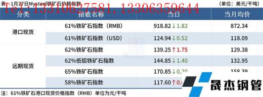 ◎ 1月27日統計新口徑114家無縫鋼管廠家進口燒結粉總庫存3792.52萬噸,燒結粉總日耗98.14萬噸。原口徑64家無縫鋼管廠家進口燒結粉總庫存1754.93萬噸,燒結粉總日耗47.99萬噸,庫存消費比36.57,燒結礦中平均使用進口礦配比88.07%,無縫鋼管廠家不含稅平均鐵水成本3139元/噸。