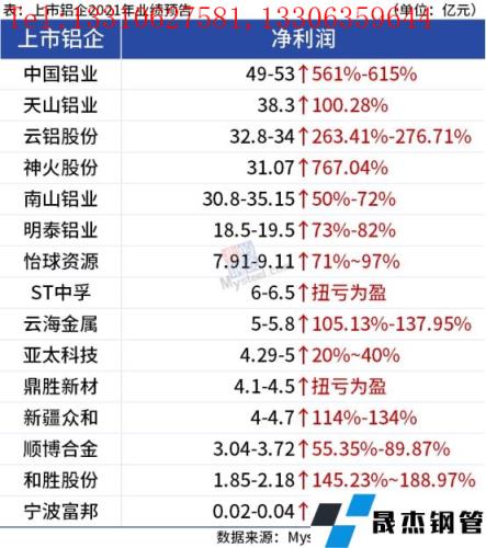 免責聲明:本網(wǎng)站(山東聊城晟杰無縫鋼管廠m.cuirutang.cn)刊載的“15家上市鋁企2021年業(yè)績飄紅,神火股份大增超7倍”等均源于網(wǎng)絡(luò),版權(quán)歸原作者所有,且僅代表原作者觀點,本文所載信息僅供參考。轉(zhuǎn)載僅為學(xué)習與交流之目的,如無意中侵犯您的合法權(quán)益,請及時聯(lián)系刪除。本網(wǎng)站刊登此篇文章并不意味著本站贊同其觀點或證實其內(nèi)容的真實性,我們不對其科學(xué)性、嚴肅性等作任何形式的保證。如果侵犯了您的版權(quán),請盡快聯(lián)系我們予以撤銷,謝謝合作!