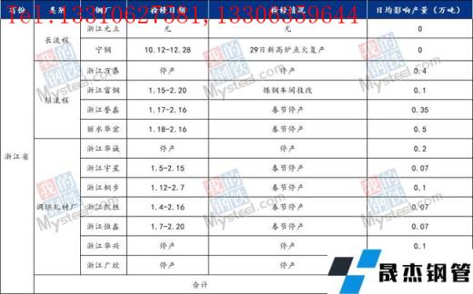 據(jù)調(diào)研,截至1月28日,浙江省內(nèi)無縫鋼管廠家已處于春節(jié)停產(chǎn)狀態(tài),日均影響產(chǎn)量較上周2.1萬噸相比維持不變。長流程無縫鋼管廠家浙江元立螺紋鋼生產(chǎn)目前正常;寧鋼1座2500立方高爐已點火復(fù)產(chǎn)。短流程無縫鋼管廠家浙江萬泰、浙江富鋼、浙江譽鑫、麗水華宏均受春節(jié)影響已經(jīng)處于停產(chǎn)狀態(tài),復(fù)產(chǎn)時間預(yù)計2月中旬左右,日均影響產(chǎn)量1.35萬噸;調(diào)坯軋材廠臨近春節(jié)的緣故,目前也皆處于停產(chǎn)狀態(tài),日均影響產(chǎn)量0.75萬噸,復(fù)產(chǎn)時間預(yù)計2月中旬左右。具體復(fù)產(chǎn)時間以無縫鋼管廠家公布時間為準。綜合來看,浙江省內(nèi)無縫鋼管廠家總計日均影響產(chǎn)量2.1萬噸左右,較上周維持不變。具體檢修情況詳見下圖:
