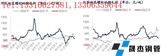 無縫厚壁鋼管廠家利潤方面,截至1月28日,調(diào)研江蘇螺紋噸鋼毛利在260元/噸附近,河北螺紋噸鋼毛利在100元/噸附近,月內(nèi)噸鋼毛利呈現(xiàn)先降后升趨勢,截至當(dāng)前兩地區(qū)螺紋噸鋼毛利略高于上月同期水平。隨著春節(jié)假期的臨近,下游需求減弱,原料端鐵礦石港口庫存開始降庫,無縫厚壁鋼管廠家節(jié)前補庫規(guī)模不斷擴(kuò)大,導(dǎo)致原料成本上升較為明顯,上半月無縫厚壁鋼管廠家噸鋼毛利出現(xiàn)回落;但下半月經(jīng)濟(jì)數(shù)據(jù)發(fā)布、成材冬儲略超預(yù)期,成材生產(chǎn)商看好節(jié)后需求,價格堅挺,噸鋼毛利回升明顯。