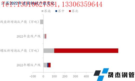 2022年江蘇產(chǎn)能整體呈現(xiàn)小幅增加的態(tài)勢,具體來看,蘇南地區(qū)螺紋產(chǎn)能新增100萬噸,淘汰30萬噸,蘇中區(qū)域暫無新增產(chǎn)能,蘇北區(qū)域產(chǎn)能增幅明顯,其中螺紋新增產(chǎn)能600萬噸;從生產(chǎn)條線來看,螺紋產(chǎn)線主要集中在蘇南、蘇北區(qū)域,蘇中區(qū)域占比較少,而盤線方面,主要是蘇南區(qū)域。整體2022年螺紋產(chǎn)線52條,同比新增5條,產(chǎn)能6504萬噸,同比新增700萬噸;盤螺產(chǎn)線25條,同比新增1條,淘汰1條,產(chǎn)能3520萬噸,淘汰30萬噸。
