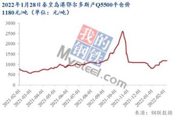 在印尼煤炭出口禁令助推市場看多情緒之下,去年12月觀望等待動力煤港口價格下跌至700元/噸基準價的下游采購和貿易商一擁而上,紛紛加入搶購大軍。不僅如此,由于今年節前補庫窗口期短、冬奧會電廠補庫和港口倒掛等利多因素發酵,秦港Q5500動力煤價格一改12月加速下滑的頹勢,在1月初開始強力反彈,截至1月28日秦皇島港鄂爾多斯產Q5500動力煤平倉價1180元/噸,較上月底增長47.5%,價格曲線也走出了深V趨勢。