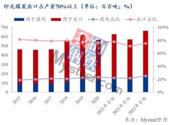 從2015年-2021年印尼煤炭產量結構可以看出,用于國內的煤炭數量平均占總產量的25%左右,而外部出口要占產量的四分之三,這也與印尼DMO中要求的煤礦應將25%煤炭輸送國內電廠基本一致。