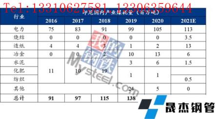 從上表中印尼國內產業煤耗量可以看出,2016-2021年期間,除2020年受疫情影響煤耗下滑之外,整體上煤耗量呈增長趨勢。其中,電力需求占印尼國內煤炭需求的絕大部分,6年平均占比80%以上。因此當印尼煤礦未完成相應國內煤炭供應義務(DMO)時,25%的國內煤炭需求則無法得到滿足,電力行業將首當其沖,面臨缺煤斷電的風險,這也正是印尼本次突發煤炭出口禁令的直接原因之一。