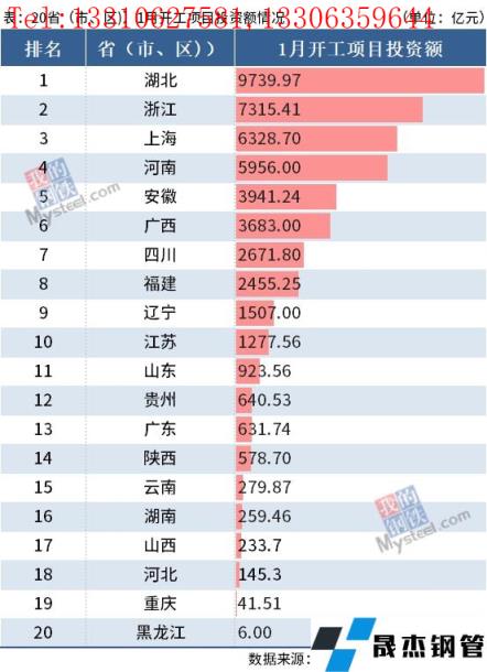 免責聲明:本網站(山東聊城晟杰無縫鋼管廠m.cuirutang.cn)刊載的“1月全國開工項目總投資近5萬億,同比增68%”等均源于網絡,版權歸原作者所有,且僅代表原作者觀點,本文所載信息僅供參考。轉載僅為學習與交流之目的,如無意中侵犯您的合法權益,請及時聯系刪除。本網站刊登此篇文章并不意味著本站贊同其觀點或證實其內容的真實性,我們不對其科學性、嚴肅性等作任何形式的保證。如果侵犯了您的版權,請盡快聯系我們予以撤銷,謝謝合作!