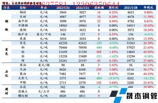 免責(zé)聲明:本網(wǎng)站(山東聊城晟杰無縫鋼管廠m.cuirutang.cn)刊載的“大宗原材料價格周報(1.24-1.28)”等均源于網(wǎng)絡(luò),版權(quán)歸原作者所有,且僅代表原作者觀點,本文所載信息僅供參考。轉(zhuǎn)載僅為學(xué)習(xí)與交流之目的,如無意中侵犯您的合法權(quán)益,請及時聯(lián)系刪除。本網(wǎng)站刊登此篇文章并不意味著本站贊同其觀點或證實其內(nèi)容的真實性,我們不對其科學(xué)性、嚴(yán)肅性等作任何形式的保證。如果侵犯了您的版權(quán),請盡快聯(lián)系我們予以撤銷,謝謝合作!