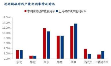 截止2月09日,統(tǒng)計(jì)全國(guó)242條廢鋼破碎線開工情況,廢鋼破碎線產(chǎn)能利用率為7.83%,較上周增0.37%,廢鋼破碎線產(chǎn)能利用率水平較上周小增。全國(guó)區(qū)域?qū)Ρ瓤矗A北、東北、華南地區(qū)破碎線產(chǎn)能利用率較上周持平,華東地區(qū)破碎線產(chǎn)能利用率較上周增1.18%,華中地區(qū)破碎線產(chǎn)能利用率較上周降0.98%,西北地區(qū)破碎線產(chǎn)能利用率較上周增1.93%,西南地區(qū)破碎線產(chǎn)能利用率較上周降1.34%。