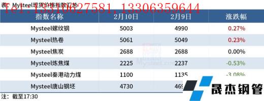 ◎ 2月10日,統計新口徑114家無縫厚壁鋼管廠家進口燒結粉總庫存3431.83萬噸,燒結粉總日耗77.38萬噸。原口徑64家無縫厚壁鋼管廠家進口燒結粉總庫存1643.78萬噸,燒結粉總日耗33.83萬噸,庫存消費比48.6,燒結礦中平均使用進口礦配比86.12%,無縫厚壁鋼管廠家不含稅平均鐵水成本3152元/噸。詳情>>