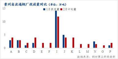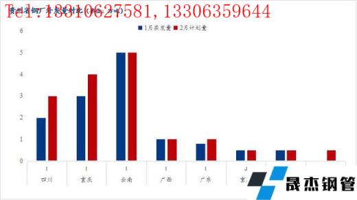 2、2月份貴州省建筑厚壁無縫鋼管資源計劃投放量45萬噸,較上個月增加11萬噸萬噸,增幅達32.35%,主要是2月中旬本地電爐企業基本復產,資源投放加大,而貴州價格逐步擺脫洼地,春節期間省外累庫速度明顯,2月份恐加大對貴州區域資源投放。