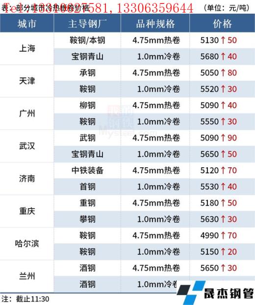 ◎上海:11日早盤熱卷市場(chǎng)價(jià)格上漲50,現(xiàn)主流報(bào)價(jià)1500普5110-5130元/噸,1800報(bào)5200-5220元/噸;1500錳5240元/噸,1800報(bào)5290元/噸左右,2.75Q235B報(bào)5230-5260元/噸,2.75SPHC報(bào)5350元/噸左右。(單位:元/噸)
