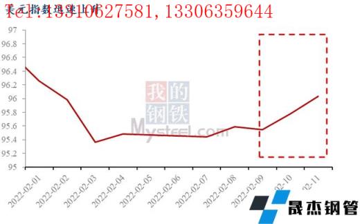 2022年2月11日,美國1月CPI指數出爐,同比增長7.5%,創40年新高。數據出爐后,美聯儲官員鷹派發聲更為強烈。美國圣路易斯聯儲主席布拉德公開表示:希望美聯儲在7月前加息100個基點,并在3月加息50個基點,當日,美元指數迅速上升至96點。
