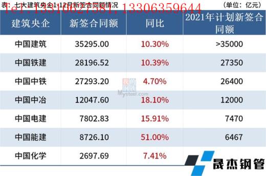 從各大央企簽單數據來看,截止2月11日,共有7家建筑央企公布其2021年新簽合同額情況。總體來看,這7家建筑央企1-12月同比均實現正增長,累計新簽合同總額超12萬億元,較去年同期(108812億元)增長12%。