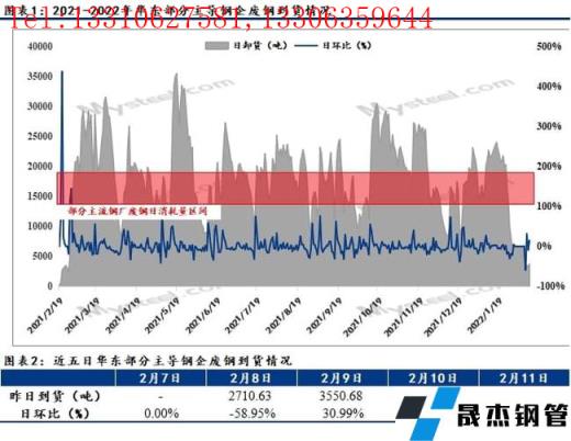 本省無縫厚壁鋼管廠家到貨情況基本處于往年同期低位水平,以本省主導鋼企為例,截止11日統(tǒng)計本省主導鋼企廢鋼到貨昨卸3710.52噸,較前一日增14.75%;今總計到船10條,海船3條,大小車20車。回顧開市以來的到貨情況,本省主導鋼企日均到貨遠低于日耗水平,完全處于耗庫狀態(tài),且耗庫速度相對較快。因此,為滿足無縫厚壁鋼管廠家日耗所需,主導鋼企廢鋼采購價格拉漲或為大勢所趨。