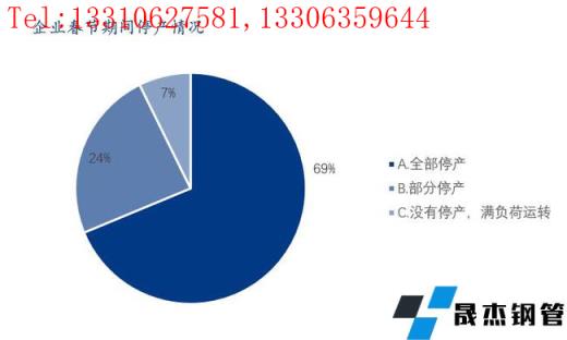 本次調(diào)研樣本企業(yè)中春節(jié)期間全部停產(chǎn)的占比69%;部分停產(chǎn)的占比24%;沒(méi)有停產(chǎn)且滿負(fù)荷運(yùn)轉(zhuǎn)的企業(yè)占比7%。