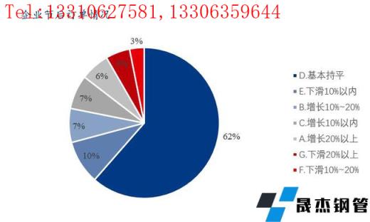 3、訂單方面穩(wěn)中有漲。與去年同期相比,企業(yè)的訂單有增長(zhǎng)的占比20%,其中增長(zhǎng)10%以內(nèi)的占比7%,增長(zhǎng)10%以上的占比13%;基本持平的占比62%;當(dāng)前所在企業(yè)的訂單狀況有所下滑的占比18%。